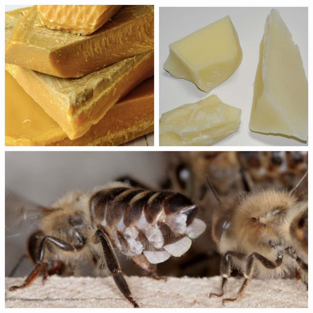 “La cera è costituita da una miscela molto complessa di sostanze chimiche organiche, in cui predominano acidi grasssi, alcoli a lunga catena e i loro esteri. Le sostanze che compongono la cera sono pressoché insolubili in acqua e dotate di notevole inerzia chimica. […] La cera si raccoglie in scagliette […] il cui aspetto ripete quello degli specchi. Successivamente esse vengono rimosse con l’aiuto delle spazzole delle zampe posteriori, vengono afferrate con le zampe anteriori e con le mandibole, per essere modellate e quindi utilizzare per la costruzione dei favi. […] Ogni scaglia di cera, dello spessore di circa mezzo millimetro, pesa in media soltanto 0,8 mg: ne occorrono dunque 1.250.000 per formare 1kg di cera!”15.