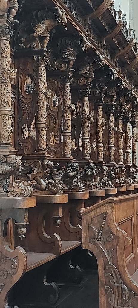 - Vedasi, ad esempio, l’immagine di copertina di questo articolo: è la foto dei pregevoli banchi della Stadtpfarrkirche di Steyr (OÖ). ↩︎